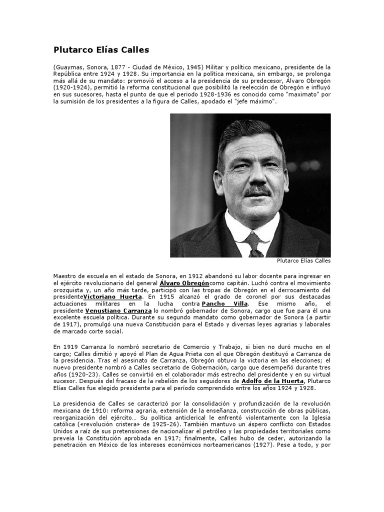 Resumen De America 2016 Mini Biografia De Plutarco Elias Calles