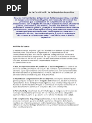 Preambulo De La Constitucion Argentina Resumen